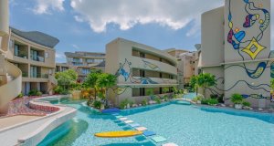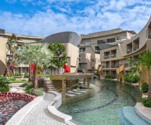 - 리조트 중앙에 위치한 워터슬라이드와 수영장